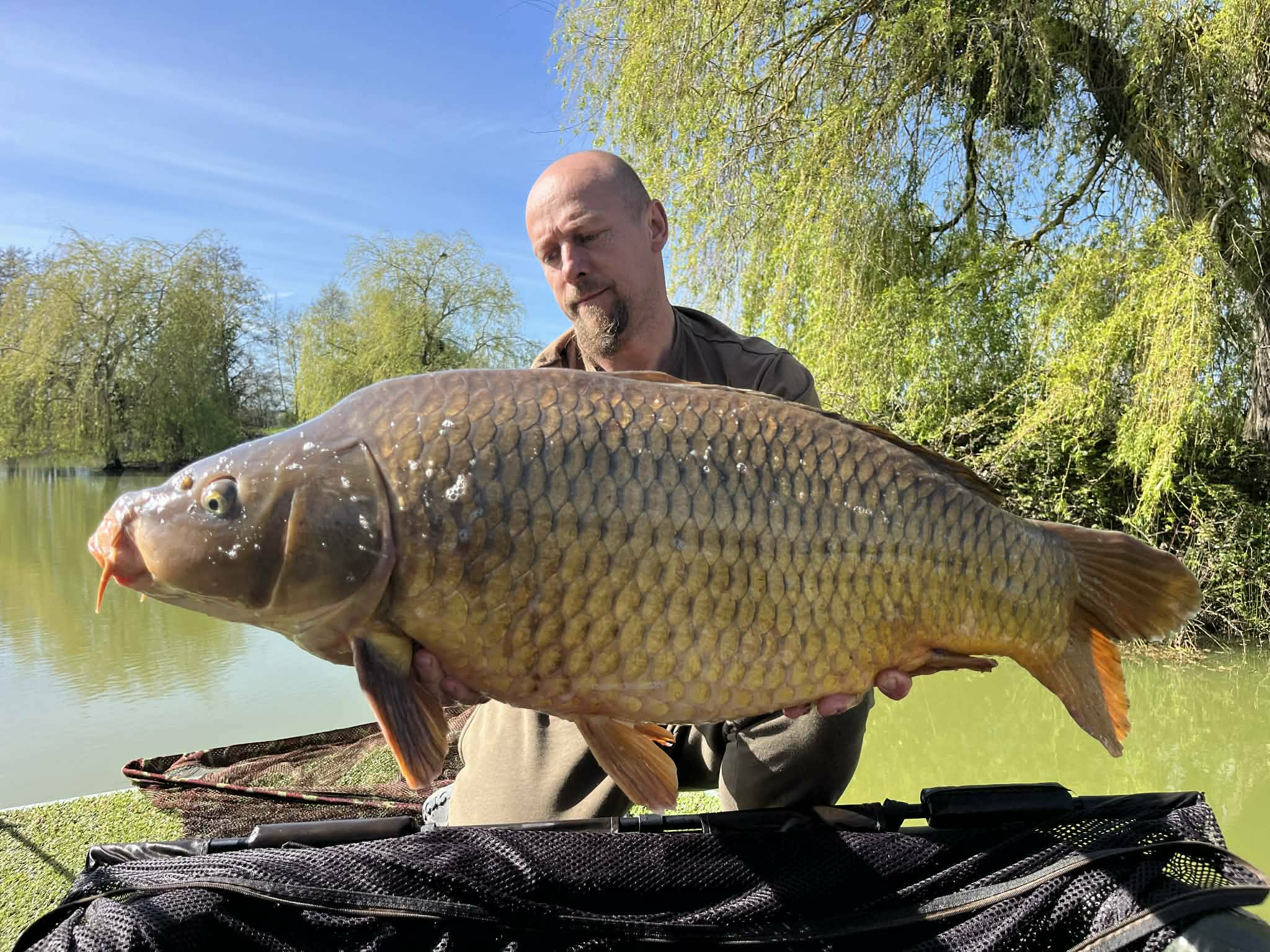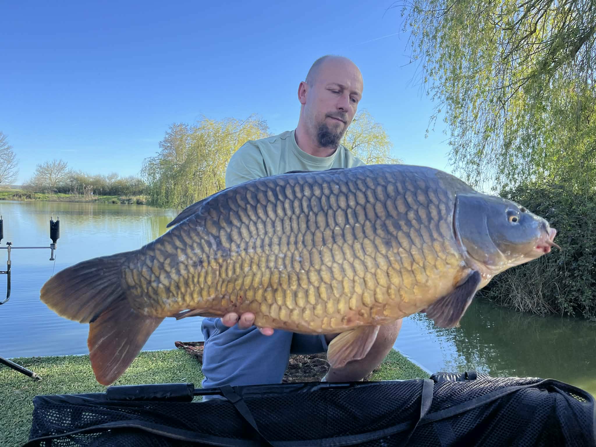Avec la présence d’écrevisses, de dresseines et de vers de vase, les carpes, carpes amour, koïs et silures grossissent d’année en année, avec un record établi à plus de 34kg !